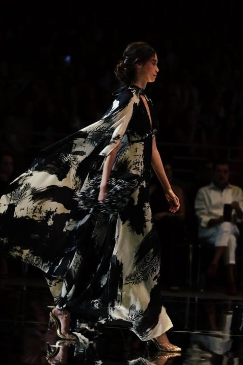 Dos colecciones SS26, dos brújulas claras: tierra y herencia para By Efraín Mogollón; agua y pulsión para Beatriz Camacho. En ambos casos, la feminidad se escribe con volumen, pero el alfabeto técnico y emocional difiere: control elástico + arquitectura textil en “La Guaricha” frente a drapeado envolvente + brillo líquido en “MAREA”.