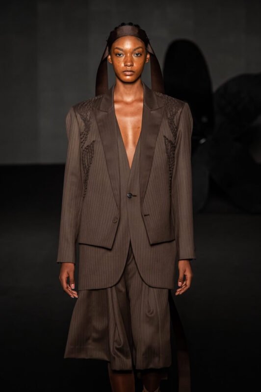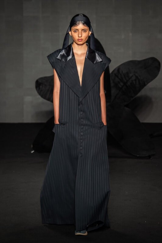 a sobrecogedora pasarela de Punto Blanco para Colombiamoda 2025 fue un manifiesto sereno y poderoso. Una invitación a hacer una pausa consciente del frenesí diario, donde todos los elementos se unieron en un reflexivo Zekkei.