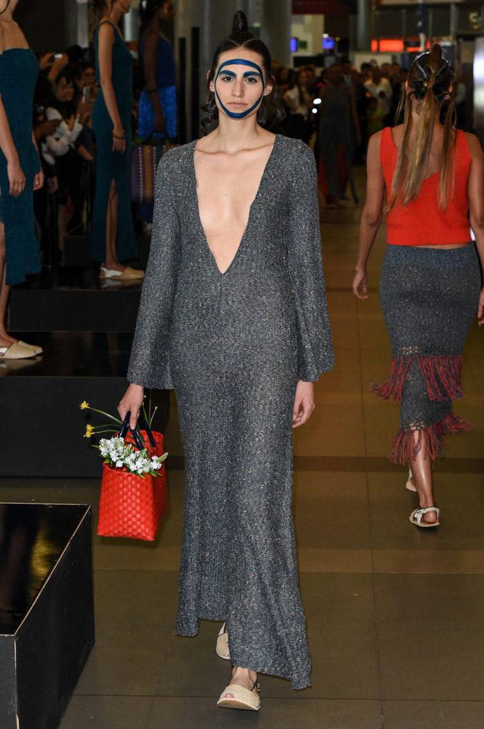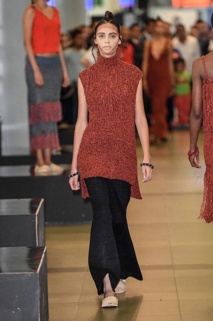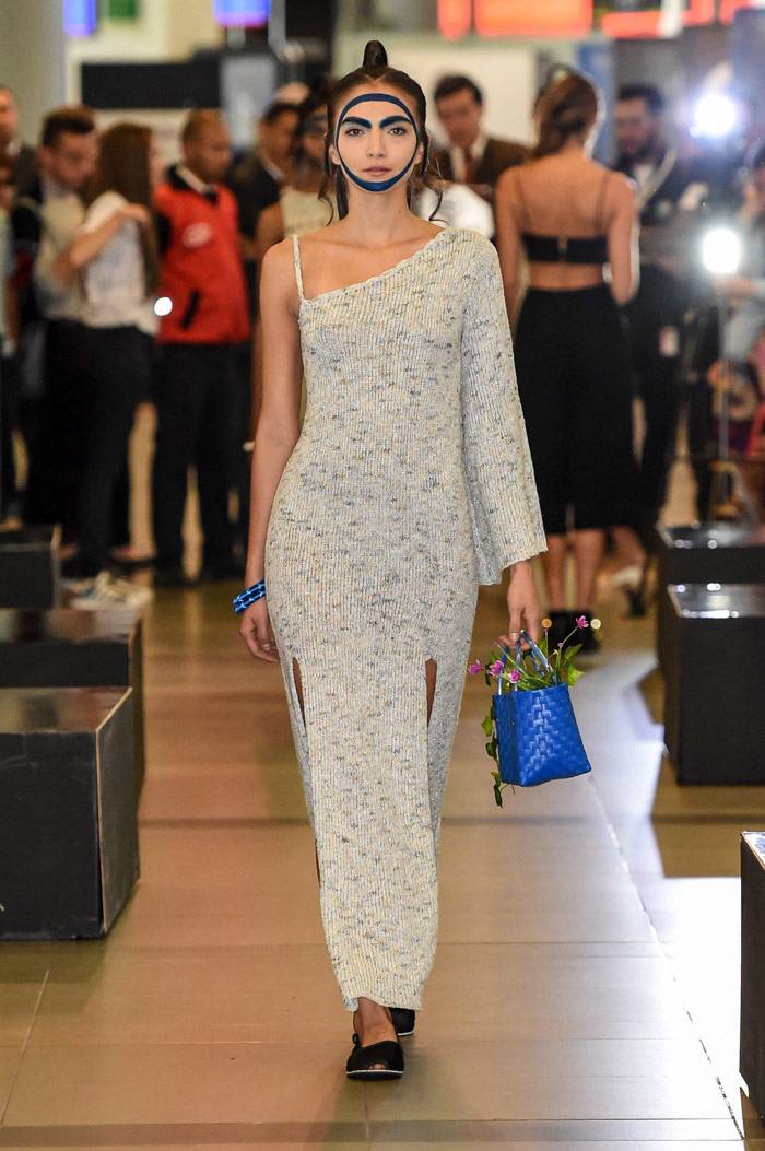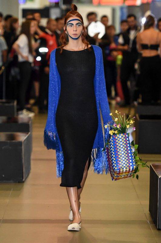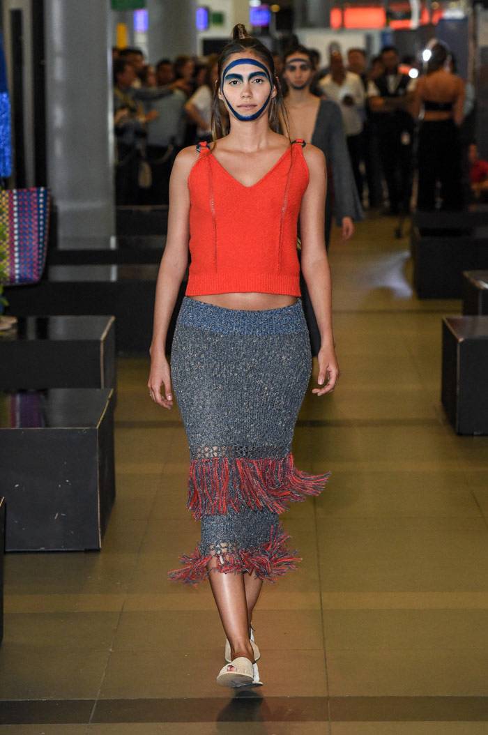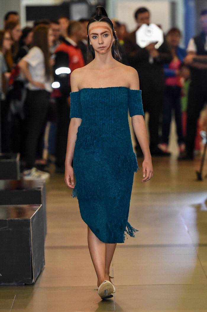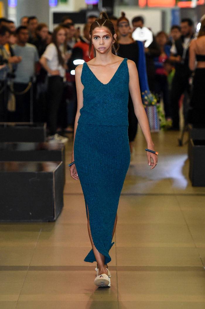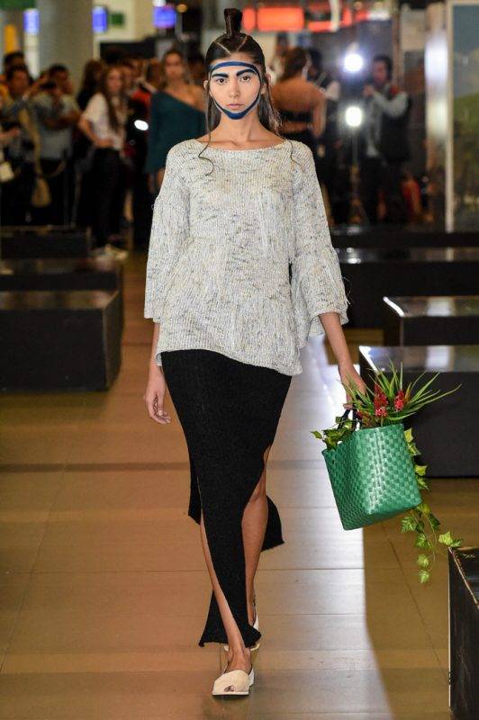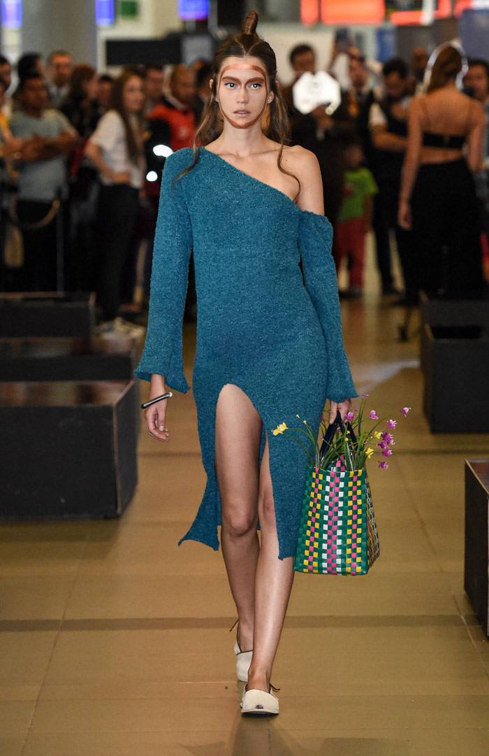 omenzó la primera edición de Bogotá Fashion Week con unas tomas de lugar que causaron sorpresa en el público habitual del aeropuerto El Dorado, el evento empezó con el trabajo de Felipe Santamaría y de Sebastian Jaramillo. LeNerd por Felipe Santamaría fue una colección de tejidos a mano con hilos de acrílico en una paleta de color novedosa para el ADN de la marca,
